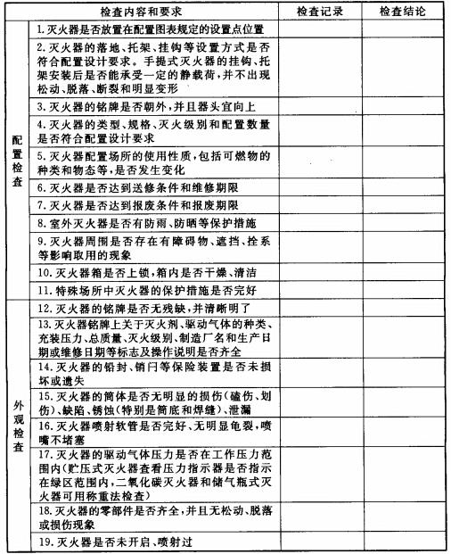 5)滅火器的配置、外觀等應按附錄C的要求每月進行一次檢查。