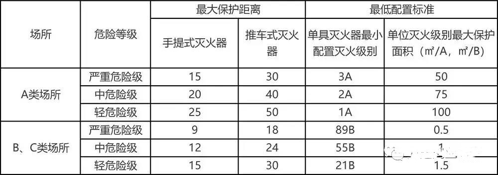 1)確定滅火器配置場所的火災類別(對應A、B、C類火災)和危險等級(查表《建筑滅火器配置設計規(guī)范》附錄)。