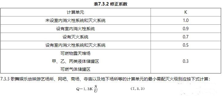 (3)歌舞娛樂放映游藝場所、網(wǎng)吧、商場、寺廟以及地下場所等的計算單元的最小需配滅火級別應按下式計算: