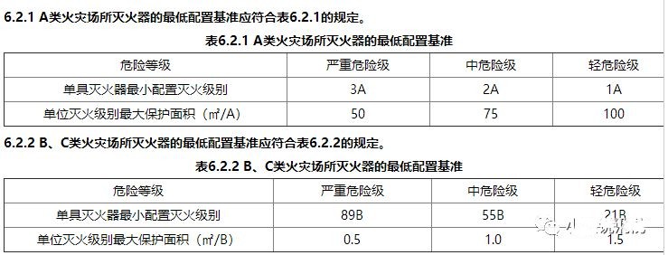 5)確定每個配置點滅火器的滅火級別及配置數(shù)量。