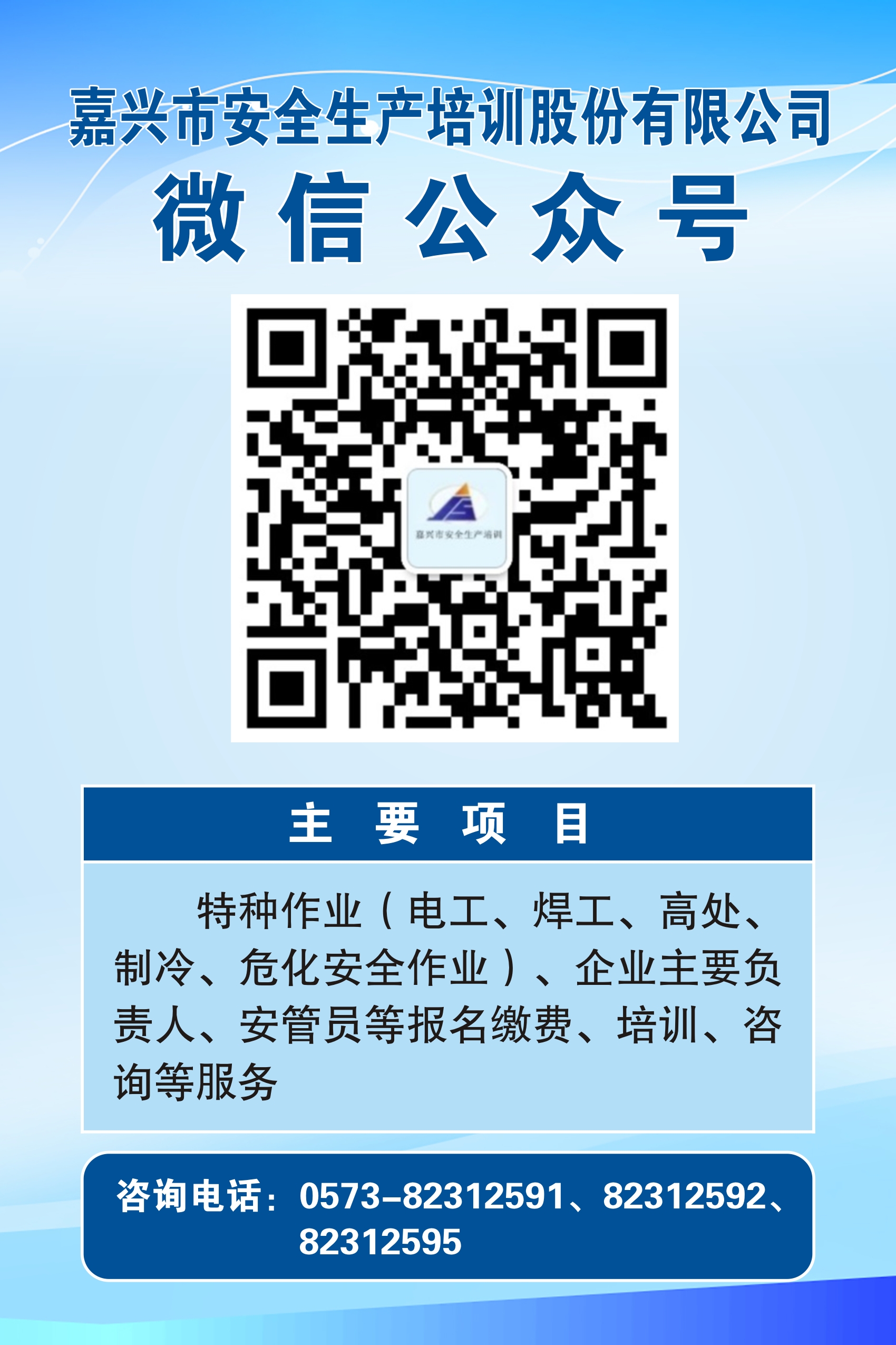 疫情期間,嘉興市安全生產(chǎn)培訓(xùn)股份有限公司特種作業(yè)(焊工作業(yè)、高壓電工作業(yè)證、低壓電工證、;踩鳂I(yè)、高處作業(yè)、制冷與空調(diào)作業(yè)等)報(bào)名培訓(xùn)考證均采用線上報(bào)名方式,可關(guān)注微信公眾號“嘉興市安全生產(chǎn)培訓(xùn)”,進(jìn)行報(bào)名操作。