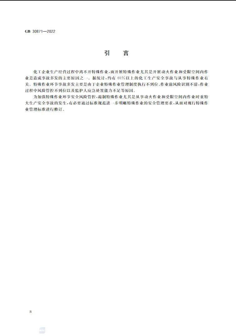 為進一步強化對危險化學品企業(yè)特殊作業(yè)過程安全風險的管控力度,貫徹落實中辦國辦《關(guān)于全面加強危險化學品安全生產(chǎn)工作的意見》,應(yīng)急管理部對2014年版《化學品生產(chǎn)單位特殊作業(yè)安全規(guī)范》(GB 30871)進行了修訂。