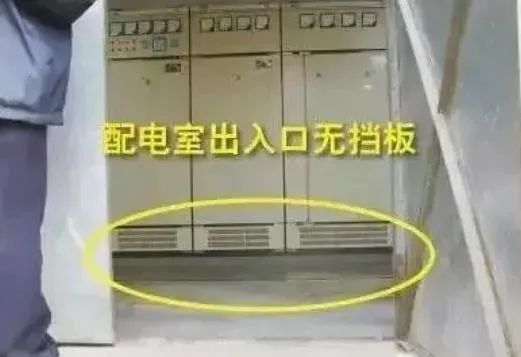 15.配電室出入口無擋板 援引依據(jù): DB 11/T 527《變配電室安全管理規(guī)范》 具體條款: 6.3.9 出入口應設置不低于400mm的防小動物擋板并采取其他的防鼠措施。 隱患危害: 當遭遇內(nèi)澇情況時,擋板能夠很好的防止水流進入配電室。 同時,擋板也能很好的隔絕老鼠等小動物的進入,避免動物啃咬造成的漏電和短路事故。