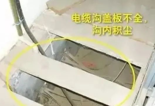 19.電纜溝蓋板不全,溝內(nèi)積灰 援引依據(jù): DB 11/T 527 《變配電室安全管理規(guī)范》 具體條款: 6.3.3 電纜溝蓋板齊全,電纜.......設置的防水、排水設施完好有效。 隱患危害: 容易引發(fā)操作人員的意外墜落及觸電事故。