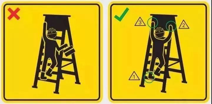 6、使用梯子時,必須維持三個接觸點的攀爬法。