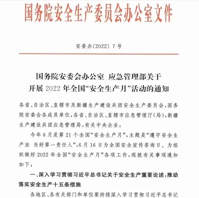 2022年全國安全生產(chǎn)月的主題為“遵守安全生產(chǎn)法  當(dāng)好第一責(zé)任人”