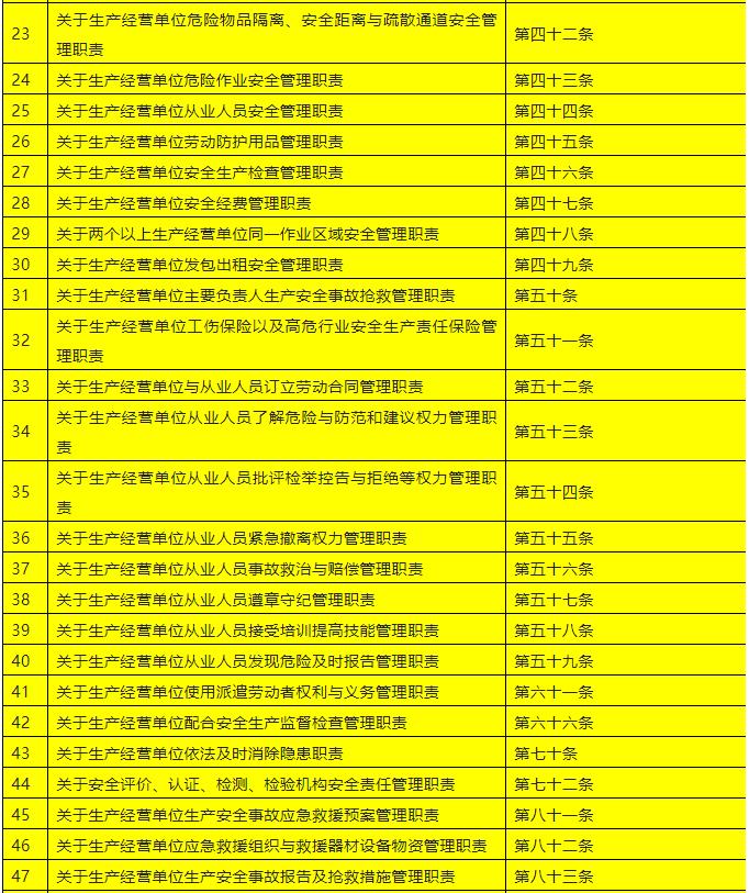 生產(chǎn)經(jīng)營單位安全生產(chǎn)50條職責(zé)一覽表
