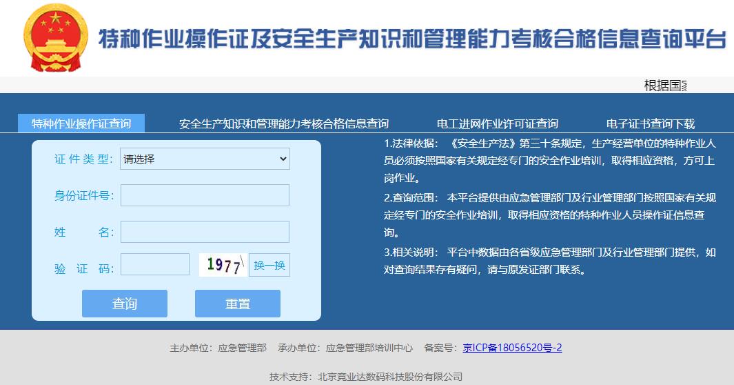 三、高處作業(yè)人員資質(zhì)查驗 高處作業(yè)人員須先進行高處作業(yè)報名培訓,必須經(jīng)安全教育并考試合格,取得高處作業(yè)的相應(yīng)特種作業(yè)操作證。登錄《中華人民共和國應(yīng)急管理部》官方網(wǎng)站-特種作業(yè)操作證及安全生產(chǎn)知識和管理能力考核合格信息查詢平臺(https://www.mem.gov.cn/fw/cxfw/),可查詢證件有效性。