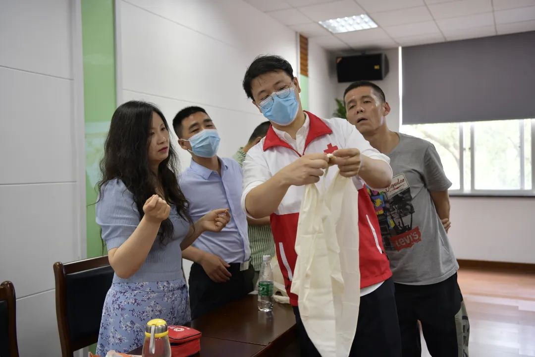 培訓課上,段老師和祁老師通過大量生動的案例講授了安全基礎(chǔ)知識和應(yīng)急救護知識,重點針對火災(zāi)處置和應(yīng)急救援過程中涉及的不同場景,講解了滅火器使用、心肺復(fù)蘇、止血包扎等內(nèi)容,并現(xiàn)場演示了心肺復(fù)蘇術(shù)的基本操作、AED的使用方法以及止血包扎技術(shù)要領(lǐng)。各位學員認真聆聽、仔細學習老師演示的每一個動作,并在老師的指導(dǎo)下進行了實操演練。
